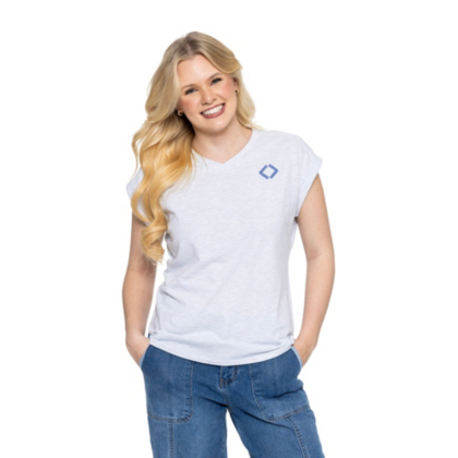 Bring a little bling in this women's tee. Featuring a rhinestone Sam's Club diamond and dolman sleeves, this v-neck tee also has a curved hem and cuffed sleeves.