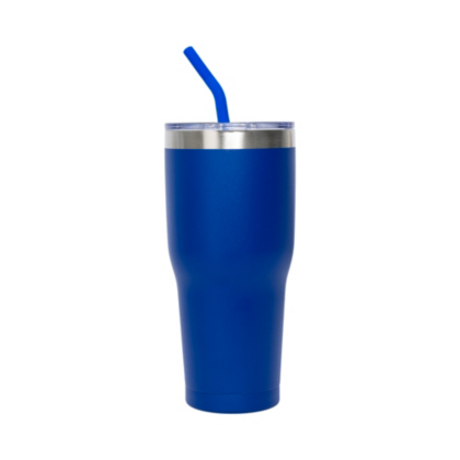 This 30 oz tumbler features double wall vacuum insulated stainless steel to keep your drink hot for 6 hours or cold for 12 hours. Comes complete with a matching straw and straw cleaning brush.