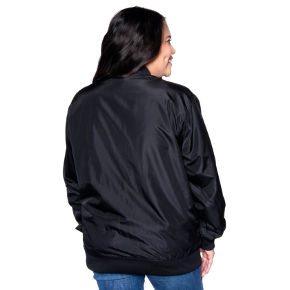 Layer up in this trendy black bomber jacket!