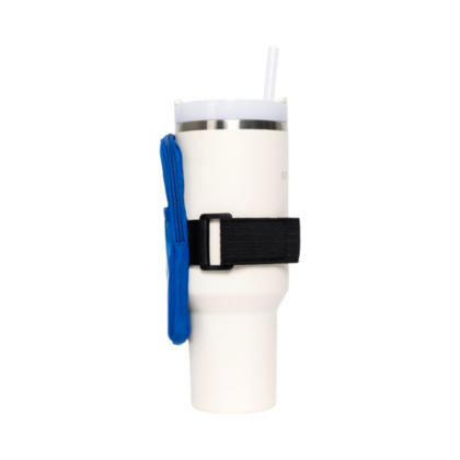 - Stretchable strap accommodates most drinkware styles