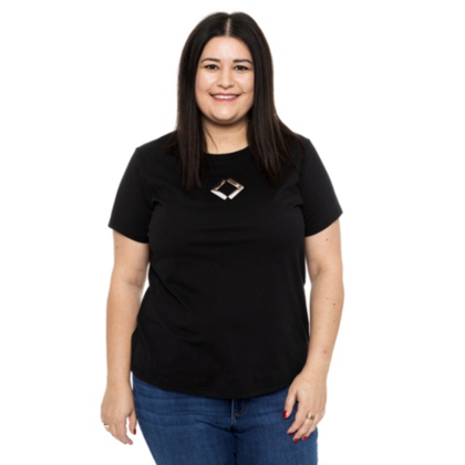 Shine on in this diamond tee. With a feminine silouette, this short sleeve tee is just the right fit. Plus, black goes with everything, so you really can't go wrong.