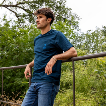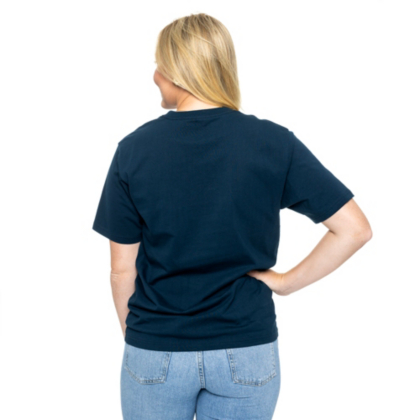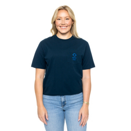 Keep it simple and subtle with this navy tee featuring a left chest pocket.