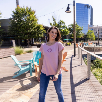 Shine on in this women's diamond tee featuring a rhinestone Sam's diamond and dolman sleeves.