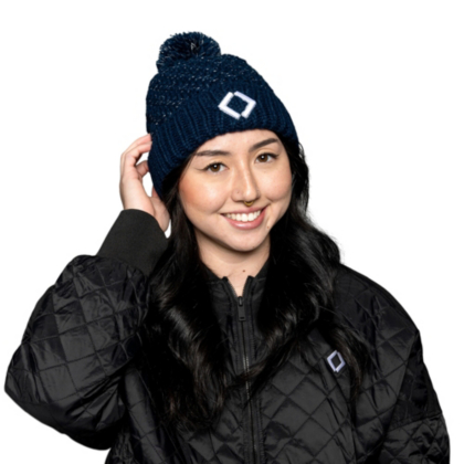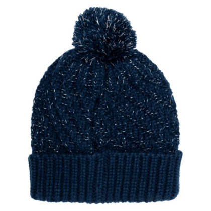 Don't be afraid to walk in that winter wonderland in this cable knit pom pom beanie. It features a white embroidered diamond and a metallic yarn cable knit to keep you feeling warm and looking festive all season long.
