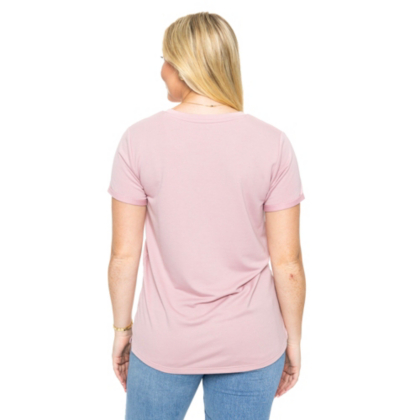 Sweet & simple. This dusty pink tee features a French terry material and is a great go-to to have in your wardrobe.