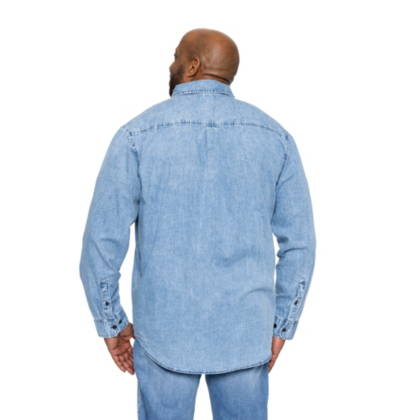 Bring a more casual & timeless look to the office. This men's brushed denim long sleeve shirt features tortoise buttons and a left chest pocket.