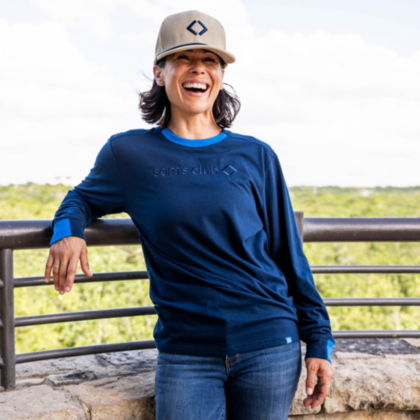 This unisex navy long sleeve tee features a tonal Sam's Club logo on the front chest and pops of Sam's blue throughout to make it not-so-basic.